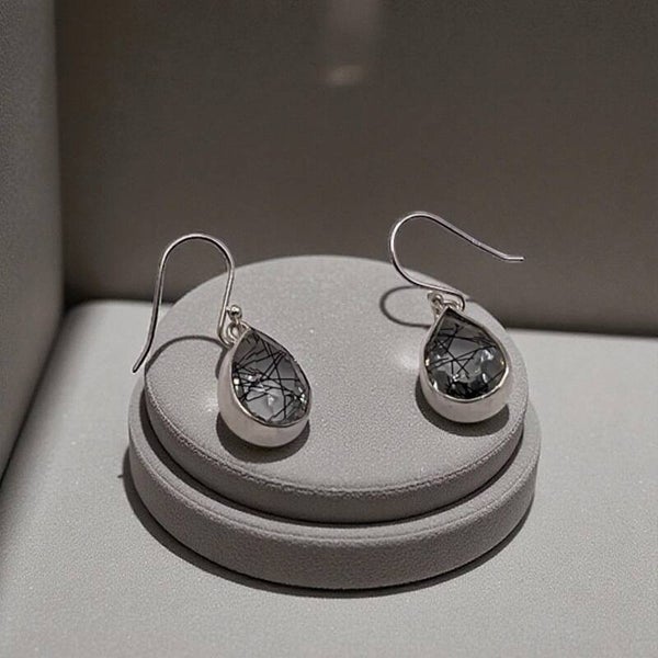 .925 Sterling Silver Pendant-(Ruti Qtz/Hematite/White Topaz)