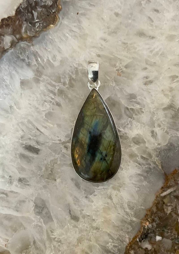 .925 SS Laboradite Teardrop Pendant